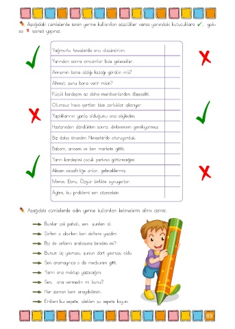 Aşağıdaki cümlelerde ismin yerine kullanılan sözcükler varsa yanındaki kutucuklara , yok-