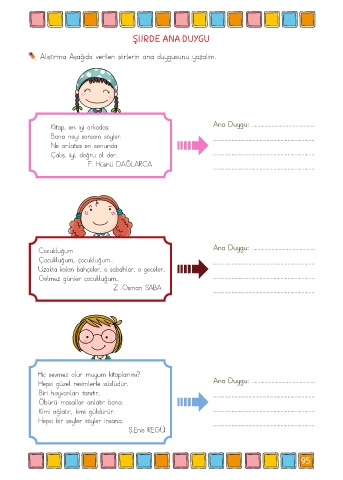 Alıştırma Aşağıda verilen şiirlerin ana duygusunu yazalım.