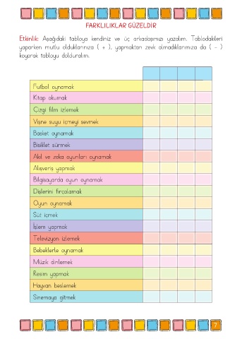 yaparken mutlu olduklarınıza ( + ), yapmaktan zevk almadıklarımıza da ( - )