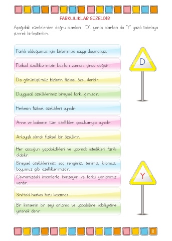 Aşağıdaki cümlelerden doğru olanları “D”, yanlış olanları da “Y” yazılı tabelaya