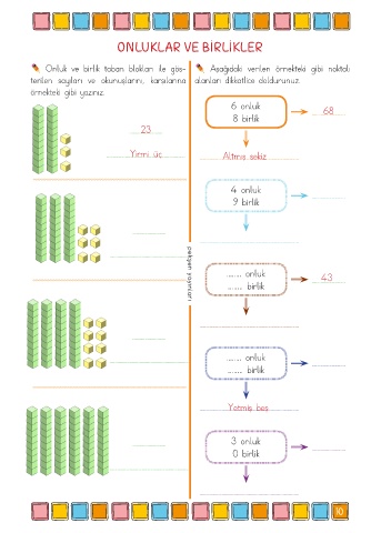 Onluk ve birlik taban blokları ile gös- Aşağıdaki verilen örnekteki gibi noktalı