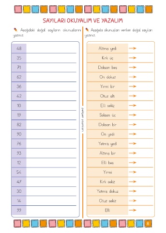 Aşağıdaki doğal sayıların okunuşlarını Aşağıda okunuşları verilen doğal sayıları