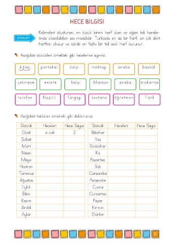 Aşağıdaki sözcükleri örnekteki gibi hecelerine ayırınız.