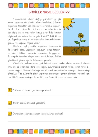 tez denir. Bitkiler besinlerini fotosentez ile yaparlar.