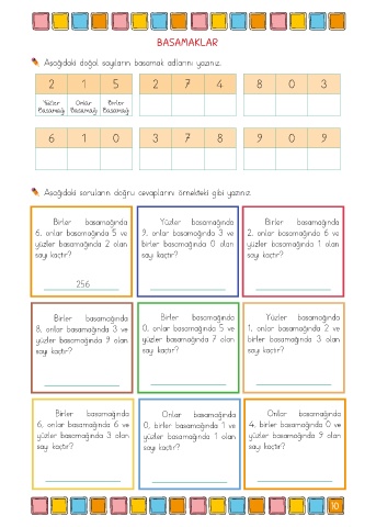 Aşağıdaki doğal sayıların basamak adlarını yazınız.