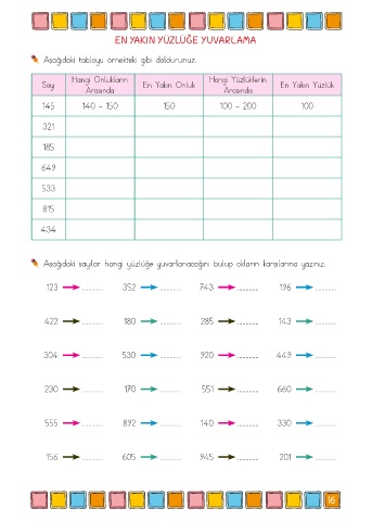 Aşağıdaki sayılar hangi yüzlüğe yuvarlanacağını bulup okların karşılarına yazınız.