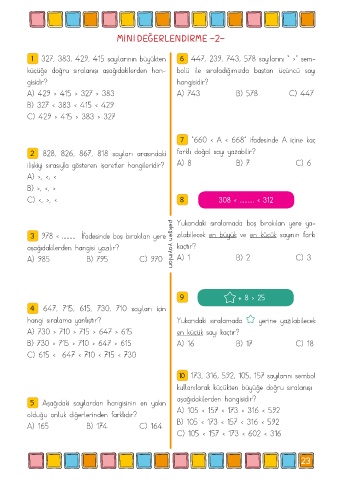 1 327, 383, 429, 415 sayılarının büyükten 6 447, 239, 743, 578 sayılarını “ >” sem-