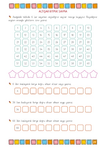 6 ’dan başlayarak ileriye doğru altışar altışar sayıp yazınız.