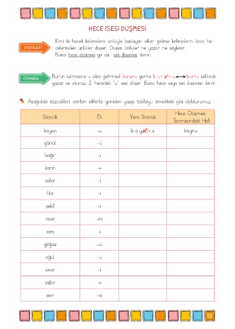 yazar ve okuruz. 2. hecedeki “u” sesi düşer. Buna hece veya ses düşmesi denir.