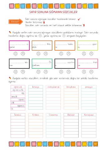 Aşağıda verilen sözcükleri, örnekteki gibi satır sonlarında doğru bir şekilde hecelerine