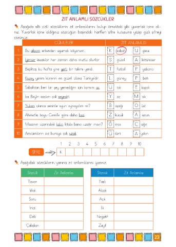 nız. Yuvarlak içine aldığınız sözcüğün başındaki harfleri şifre kutusuna yazıp gizli şifreyi