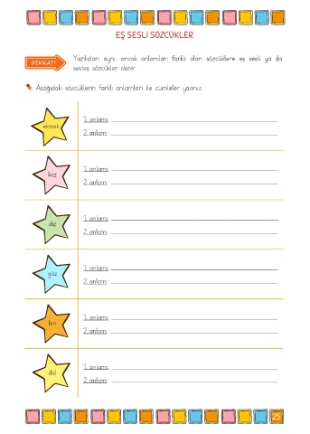 Aşağıdaki sözcüklerin farklı anlamları ile cümleler yazınız.