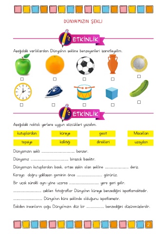 Aşağıdaki varlıklardan Dünya’nın şekline benzeyenleri işaretleyelim.