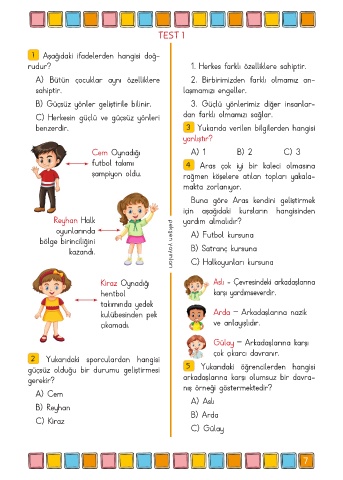A) Bütün çocuklar aynı özelliklere 2. Birbirimizden farklı olmamız an-