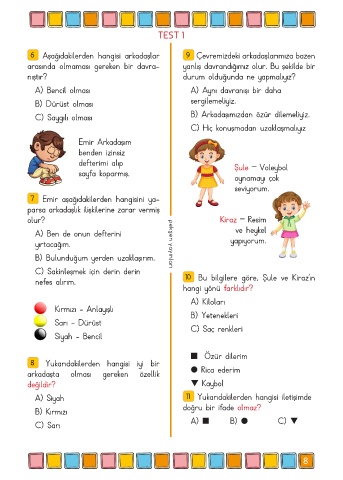 6 Aşağıdakilerden hangisi arkadaşlar 9 Çevremizdeki arkadaşlarımıza bazen