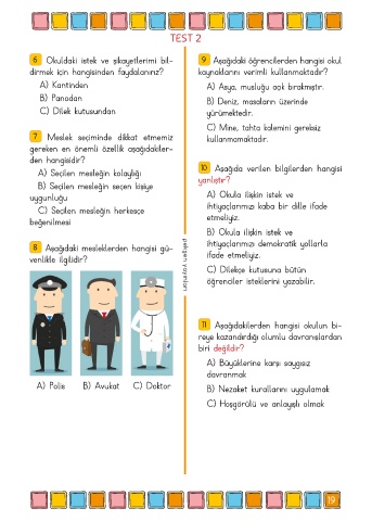 6 Okuldaki istek ve şikayetlerimi bil- 9 Aşağıdaki öğrencilerden hangisi okul