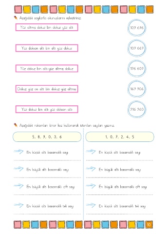 Aşağıdaki rakamları birer kez kullanarak istenilen sayıları yazınız.
