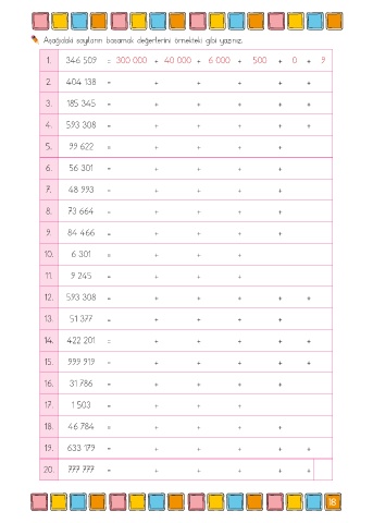 Aşağıdaki sayıların basamak değerlerini örnekteki gibi yazınız.