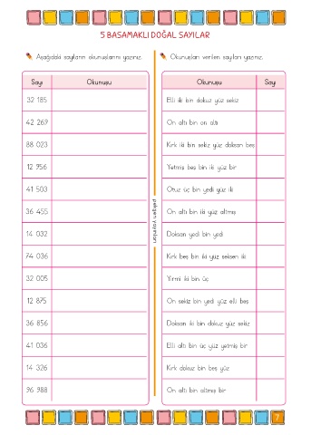 Aşağıdaki sayıların okunuşlarını yazınız. Okunuşları verilen sayıları yazınız.