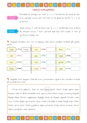 Aşağıdaki metni okuyunuz. Metinde ünsüz yumuşamasına uğramış olan sözcükleri örnekteki