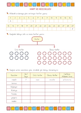 Aşağıdaki tabloya ünlü ve ünsüz harfleri yazınız.