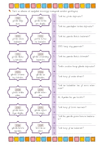 Tarık ve ailesine ait aşağıdaki kronolojiyi inceleyerek soruları yanıtlayınız.