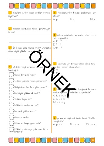 1 Yıldızların neden küçük oldukları düşünü- 5 Aşağıdakilerden hangisi alfabemizde yer