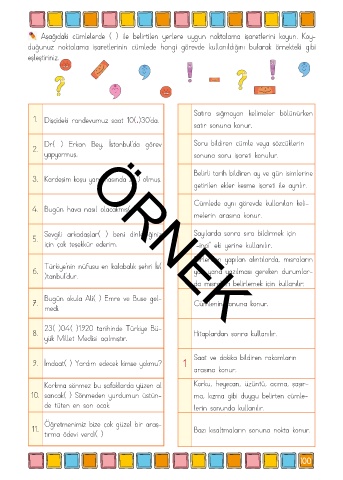 Aşağıdaki cümlelerde ( ) ile belirtilen yerlere uygun noktalama işaretlerini koyun. Koy-