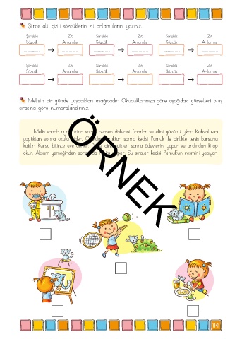 Melis’in bir günde yaşadıkları aşağıdadır. Okuduklarınıza göre aşağıdaki görselleri oluş