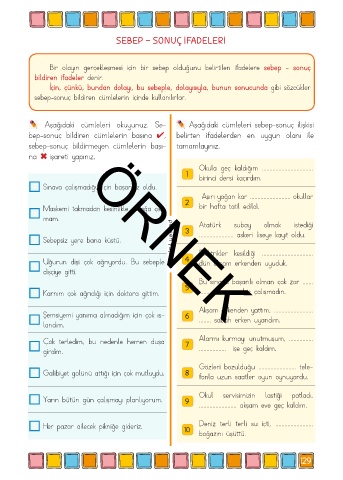 Aşağıdaki cümleleri okuyunuz. Se- Aşağıdaki cümleleri sebep-sonuç ilişkisi