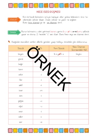 yazar ve okuruz. 2. hecedeki “u” sesi düşer. Buna hece veya ses düşmesi denir.