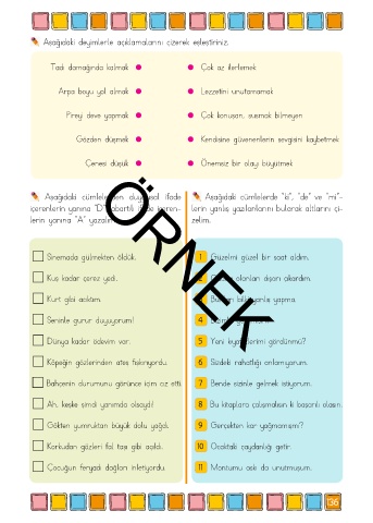 Aşağıdaki deyimlerle açıklamalarını çizerek eşleştiriniz.