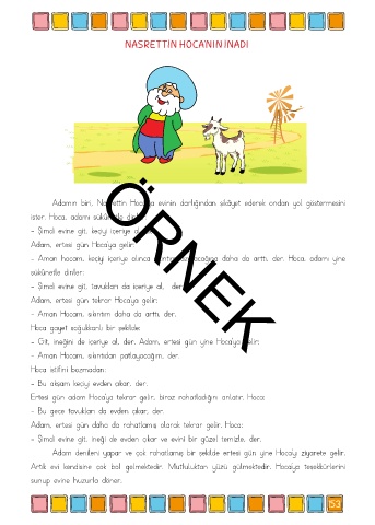 - Aman hocam, keçiyi içeriye alınca sıkıntım azalacağına daha da arttı, der. Hoca, adamı yine