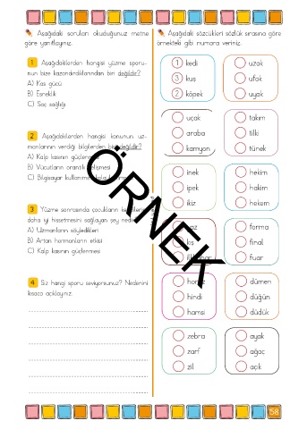 göre yanıtlayınız. örnekteki gibi numara veriniz.