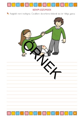 BENİM GÖZÜMDEN Aşağıdaki resmi inceleyiniz. Çocukların durumlarına bakarak kısa bir hikâye yazınız. ÖRNEK 18