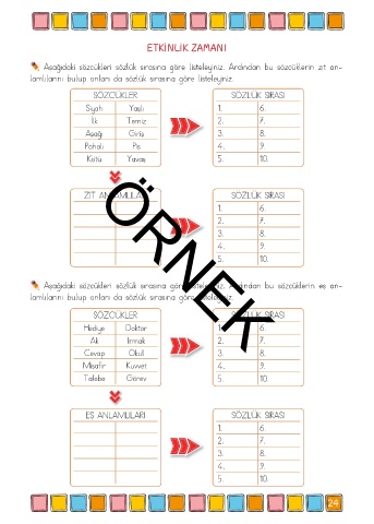 Aşağıdaki sözcükleri sözlük sırasına göre listeleyiniz. Ardından bu sözcüklerin zıt an-