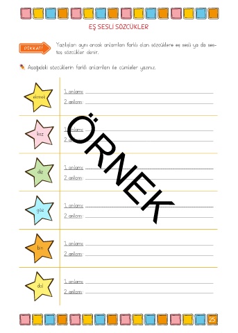 Aşağıdaki sözcüklerin farklı anlamları ile cümleler yazınız.