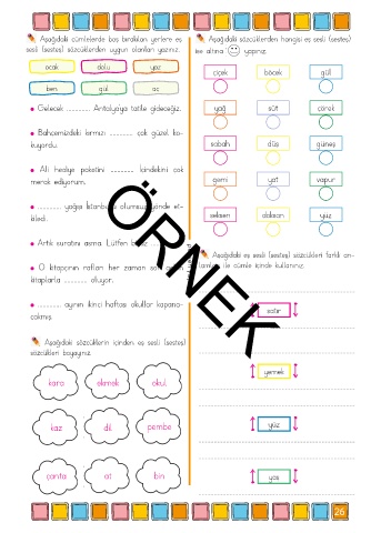 sesli (sesteş) sözcüklerden uygun olanları yazınız. ise altına yapınız.