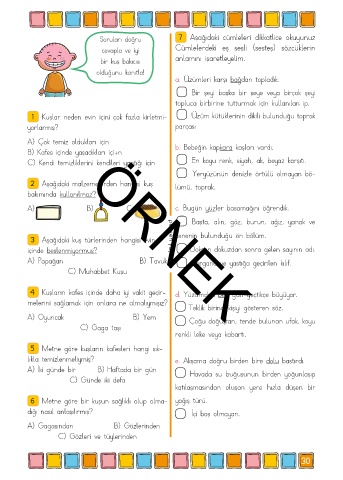 Soruları doğru 7 Aşağıdaki cümleleri dikkatlice okuyunuz