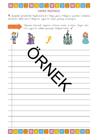 işaretlerine dikkat ediniz. Hikâyenize uygun bir başlık yazmayı unutmayınız.