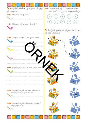 Aşağıdaki etkinlikleri yazdığınız hikâyeye Yazdığın hikâyeye 10 üzerinden puan