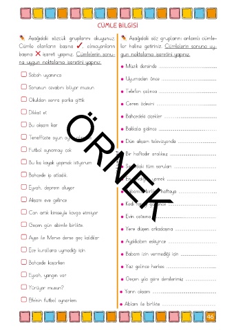 Cümle olanların başına , olmayanların ler haline getiriniz. Cümlelerin sonuna uy-