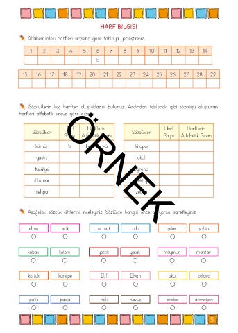 iSözcüklerin kaç harften oluştuklarını bulunuz. Ardından tablodaki gibi sözcüğü oluşturan