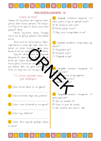 ÇOBAN İLE DENİZ 6 Aşağıdaki cümlelerin hangisinde “-mi”