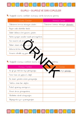 Aşağıdaki olumlu cümleleri olumusuz cümle durumuna getiriniz.