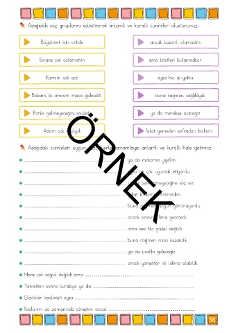 Aşağıdaki cümleleri uygun sözcüklerle tamamlayıp anlamlı ve kurallı hale getiriniz.