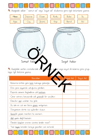 Aşağıdaki verilen cümlelerdeki altı çizili adları somut veya soyut olmalarına göre grup-
