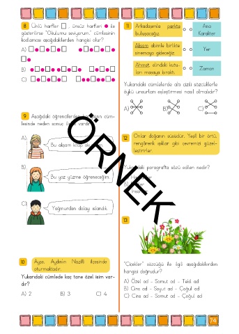 10 Ayşe, Aydın’ın Nazilli ilçesinde “Çiçekler” sözcüğü ile ilgili aşağıdakilerden
