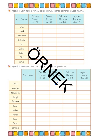 Aşağıdaki yalın hâlleri verilen adları, durum eklerini getirerek yeniden yazınız.