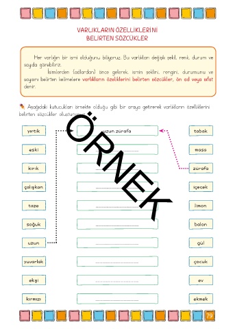 Aşağıdaki kutucukları örnekte olduğu gibi bir araya getirerek varlıkların özelliklerini